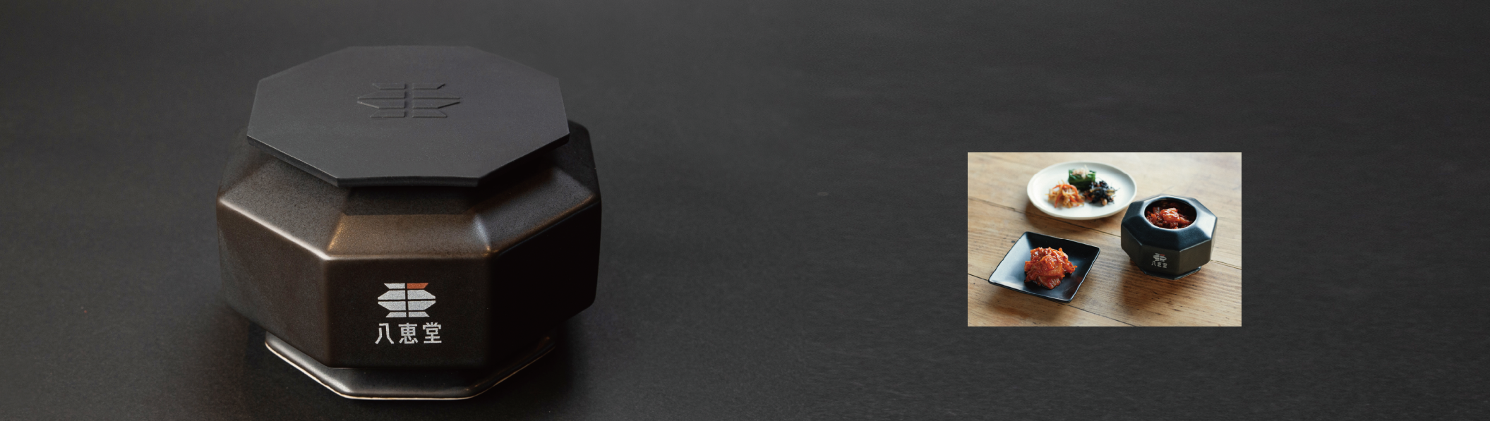 日本に数少ない職人の「型抜き製法」で一つ一つ作っています。こだわった壺の形や大きさは、キムチの保存環境を整えるためのもので、「八恵」を「八形」と模しています。